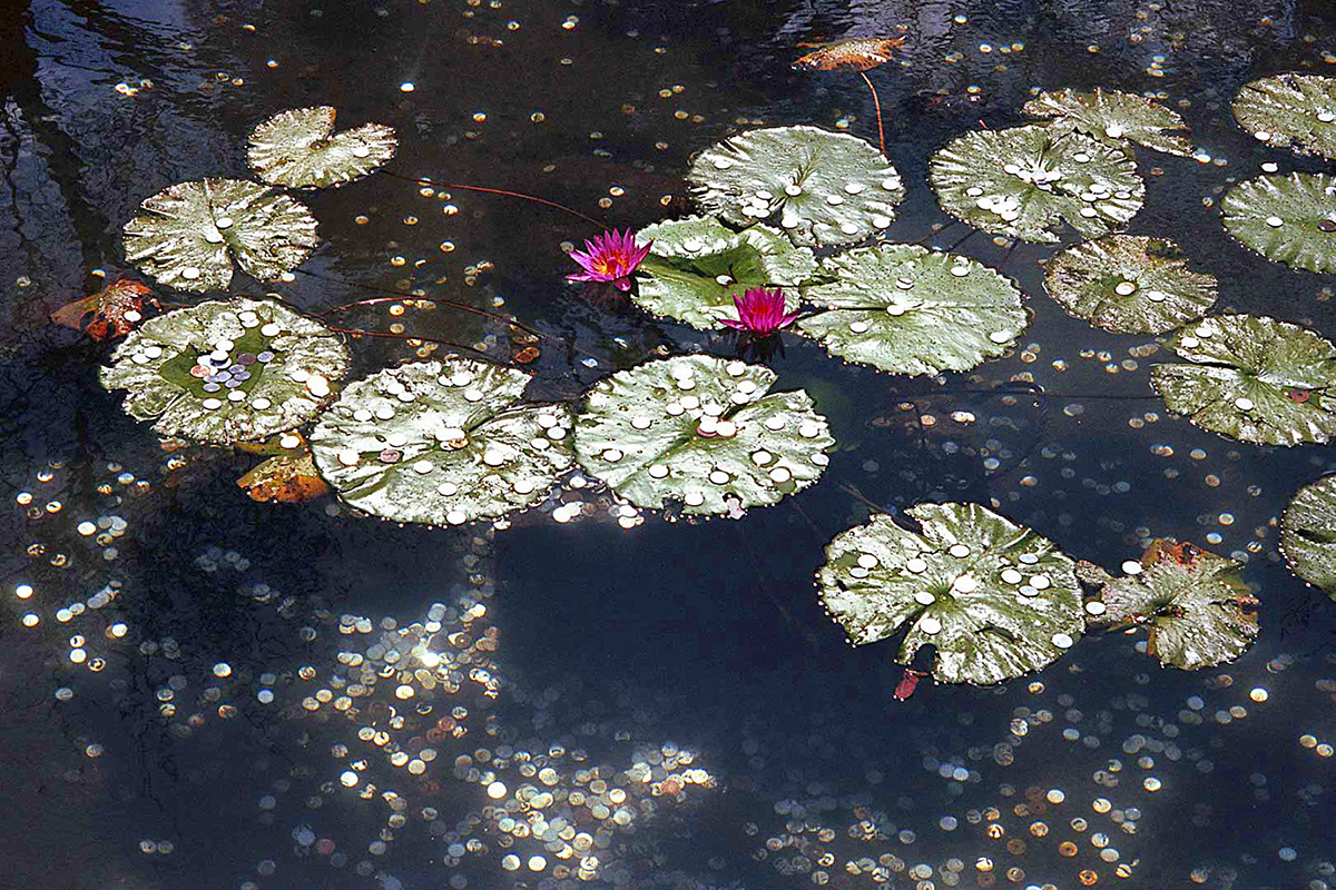 Indem er den alten Brauch des „Hanami“ teilte, bei dem man die Schönheit der Blumen, vor allem der Kirschblüten, betrachtet, ließ sich François Fontaine von der Süße des Frühlings und der Pracht der Blüten verzaubern, um die Elemente der Natur in ihrer ganzen Pracht einzufangen: das Spiel des Lichts im Laub, die grafischen Formen der Zweige, die farbenfrohen Strukturen auf dem feuchten Boden und die Spiegelungen der Bäume in den Teichen.