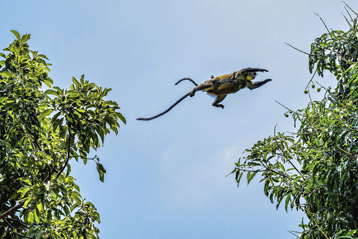 In dieser mit dichter tropischer Vegetation bedeckten Bergwelt wurde Anfang der 2000er Jahre das letzte Exemplar einer Affenart entdeckt, die als Kipunji (Rungwecebus kipunji) bekannt ist. Allerdings gibt es keine Löwen, keine Nashörner, keine Leoparden… Also machen die Touristen einen Bogen um diesen Park. Wissenschaftler betrachten Udzungwa als eines der wichtigsten Schutzgebiete, da dieses nur 2 000 km² große Gebiet eine der reichsten Artenvielfalten des afrikanischen Kontinents beherbergt. Seine Wasserfälle, darunter der 170 Meter hohe Sanje, versorgen die gesamte Region auf natürliche Weise mit Wasser. Im Rahmen eines Fotoauftrags der Fondation Yves Rocher studierte der Fotojournalist Frédéric Noy, ein führender Experte für Umwelt- und geostrategische Fragen, monatelang diesen bedrohten Naturraum intensiv.