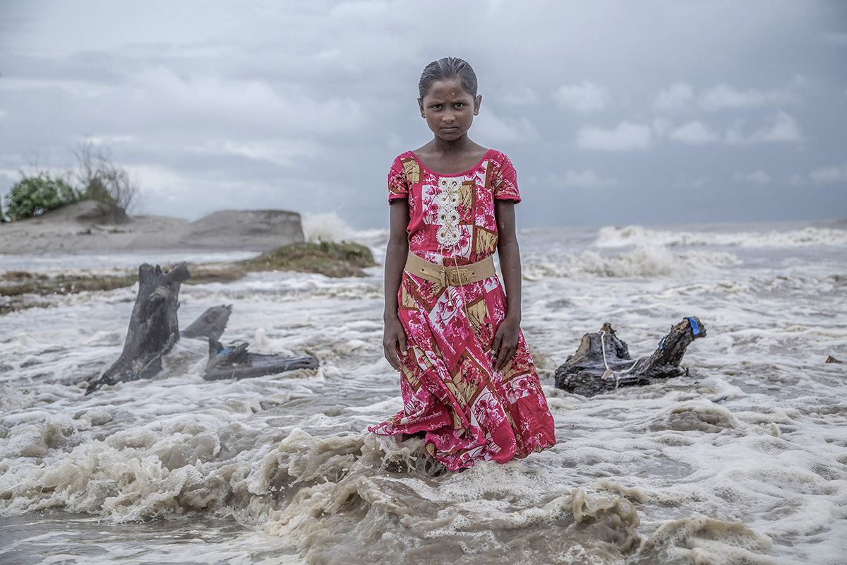 Dennoch ist diese fragile Umwelt zahlreichen unmittelbaren Risiken ausgesetzt. Die Mangrovenwälder, die als Pufferzone gegen Stürme und Flutwellen dienen, schrumpfen rapide. Der Meeresspiegel steigt unaufhaltsam, wodurch die Region immer anfälliger für Klimakatastrophen wird, was die Nahrungsmittel- und Wasserknappheit verschärft und die landwirtschaftliche Produktivität verringert. Die Fotos von Supratim Bhattacharjee erinnern an diesen offenkundigen Zustand, den niemand wahrhaben will.