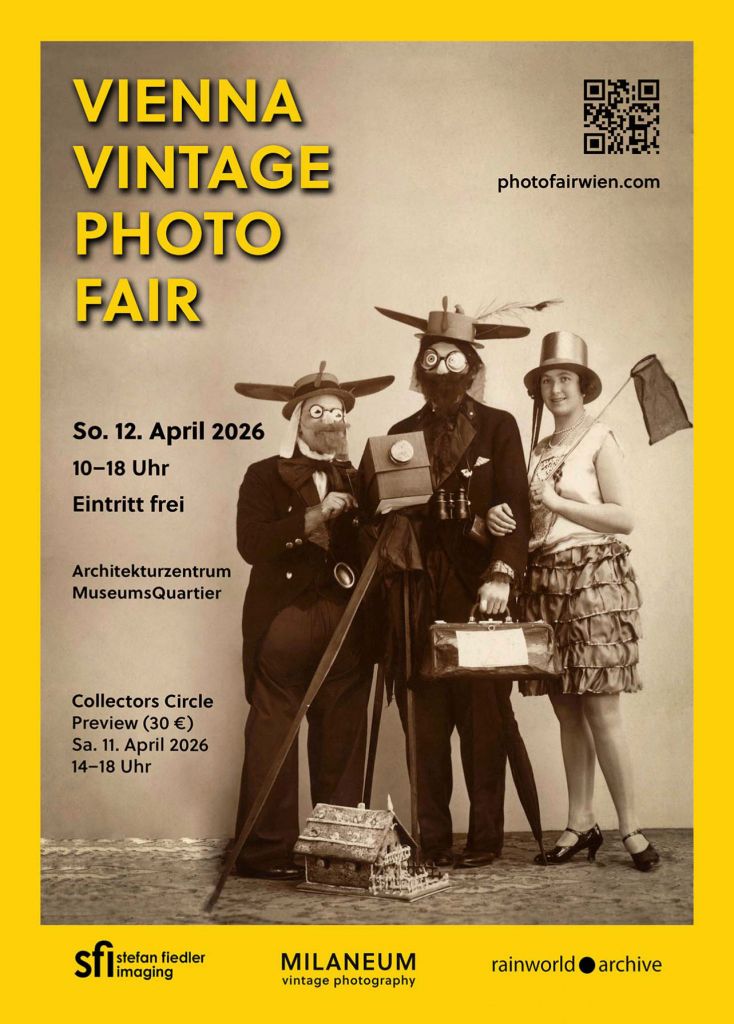 Am Sonntag, den 12. April 2026, findet im Architekturzentrum Wien im MuseumsQuartier die vierte Vienna Vintage Photo Fair statt. 40 internationale HändlerInnen und ExpertInnen präsentieren dort einem breiten Publikum fotohistorische Raritäten und einzigartige Alltagsfotografien aus drei Jahrhunderten. Alle Fotografien können zu moderaten Preisen erworben werden.