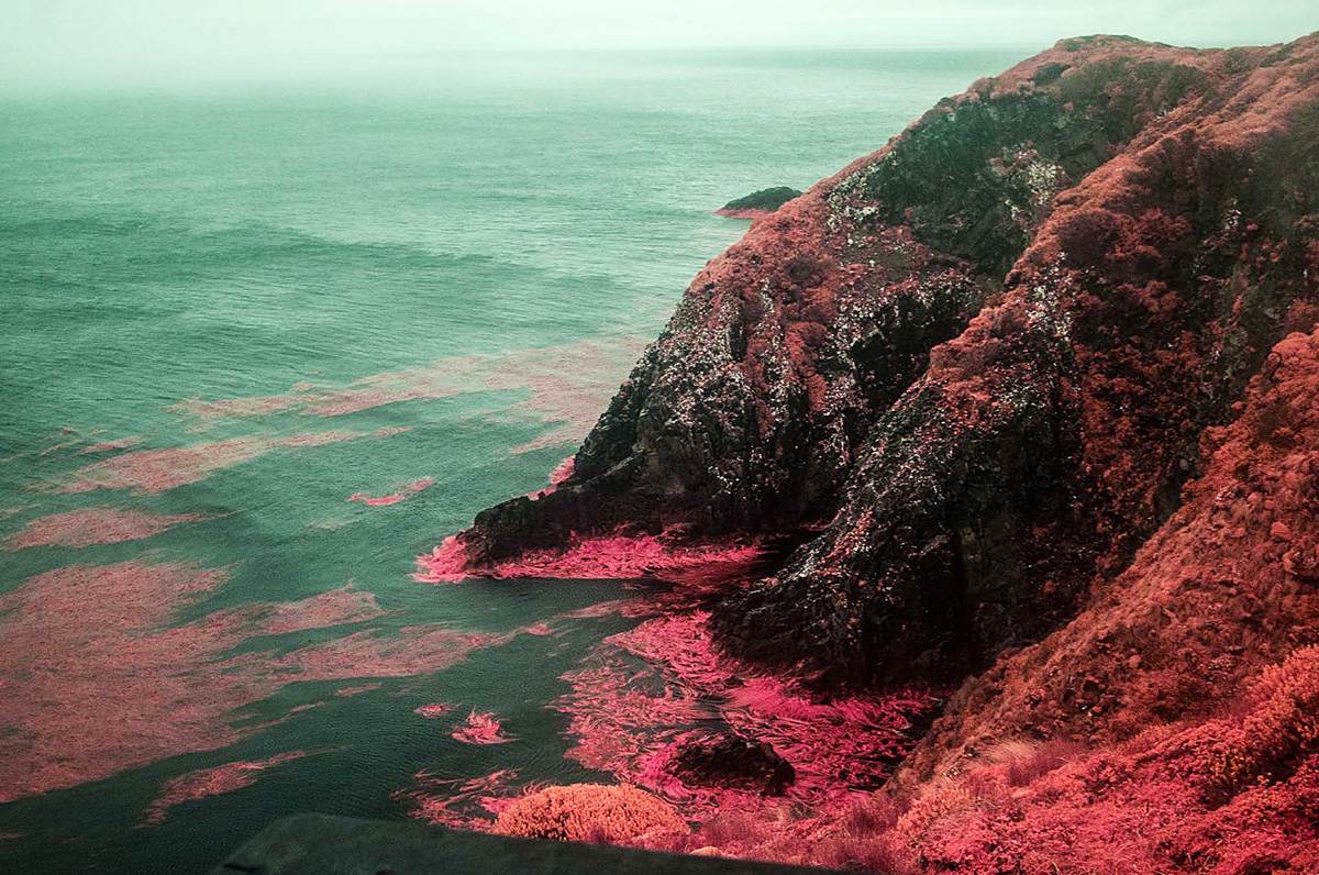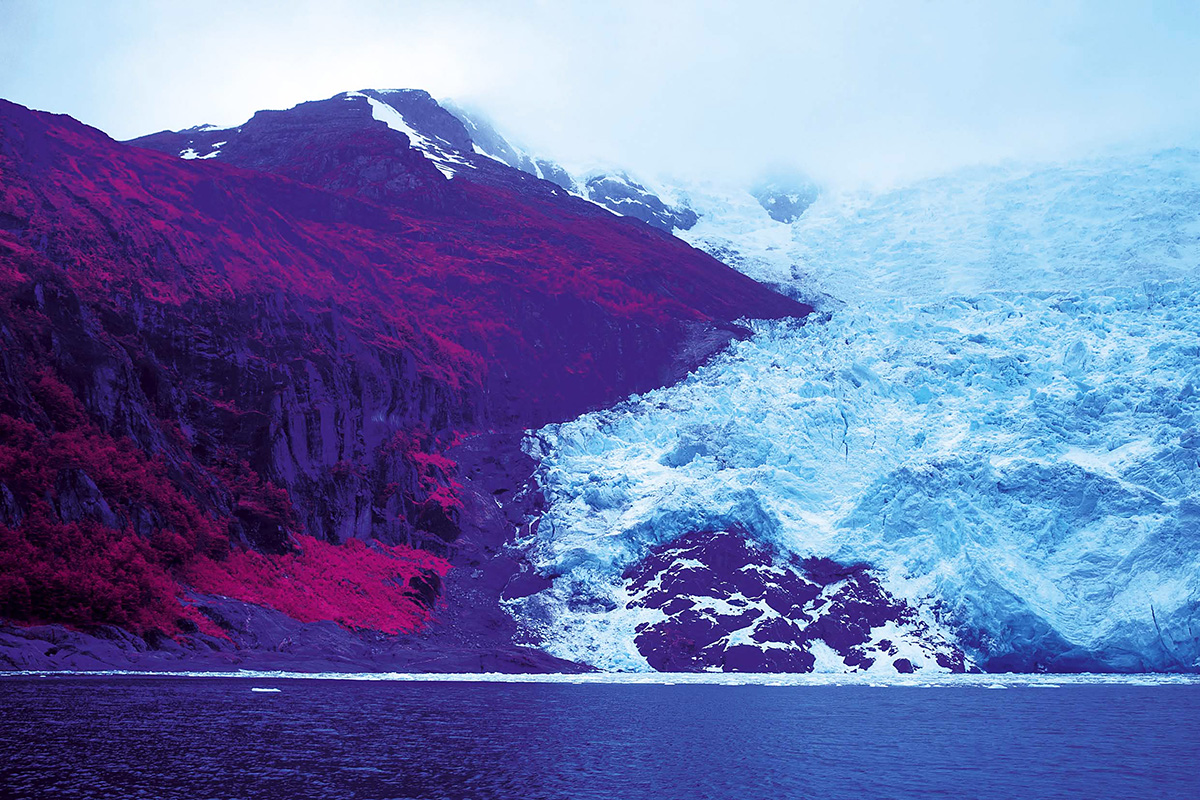 In this photographic essay, which is both a documentary and an artwork, photographer Axelle de Russé plays on the chromatic similarity between the two poles affected by climate change. She states: “The darkness of the photos is intended to express the evanescence of a fragile, endangered world. I also tried to suggest warming and the sensation of heat using infrared to highlight what is not perceptible to the human eye by transforming the image’s colourimetry. When a picture is taken, the “hottest” points turn magenta.”