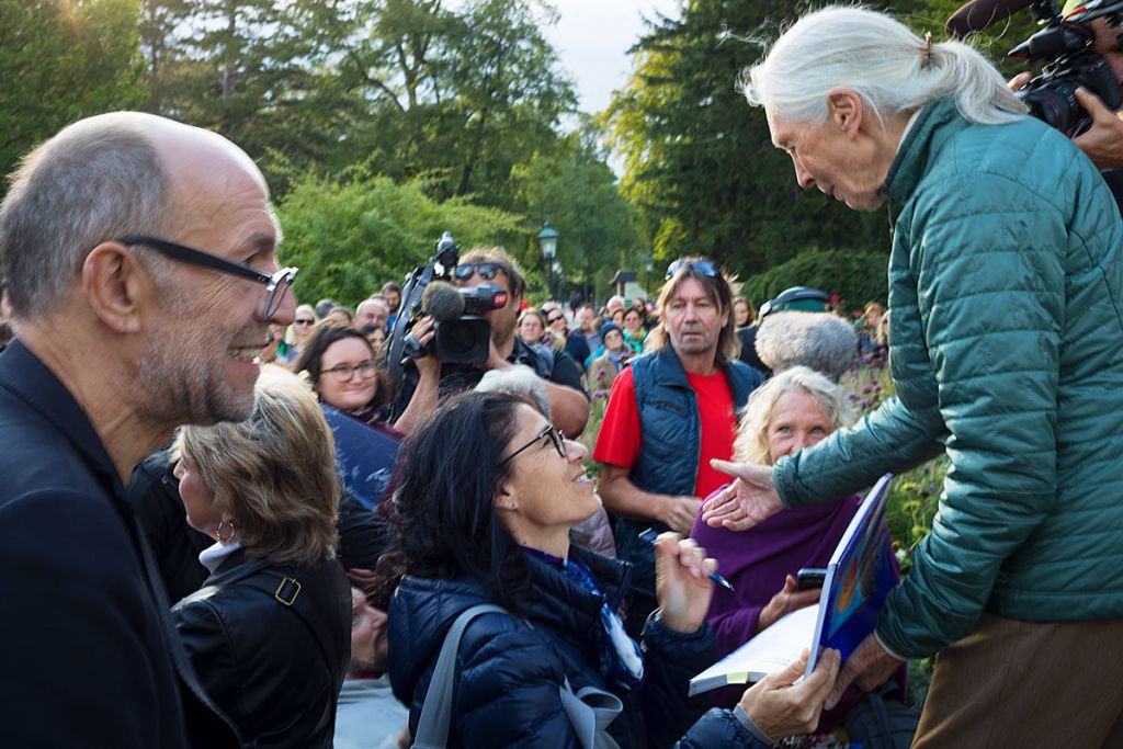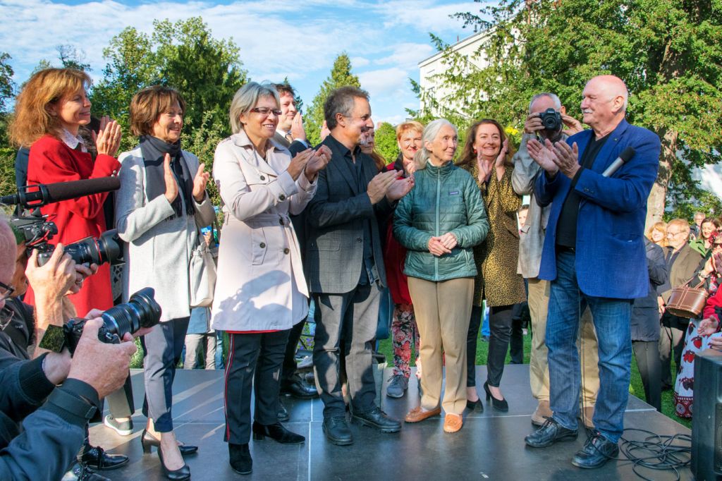 „Wenn jemand träumt, dann träumt er alleine, wenn viele träumen, dann können diese Träume die Welt verändern. Dieses Zitat von Friedensreich Hundertwasser beschreibt genau, wie ich die Begegnung mit Jane Goodall erlebt habe“, so durfte ich in einem Interview über Dich berichten. Im Anschluss an Deine Rede im Park fand ein Charity-Dinner im Schloß Weikersdorf statt. Der gesamte Erlös kam zur Gänze dem „Jane Goodall Institute“ zugute. Silvia und Anita überreichten Dir mit großer Freude im Namen des Festival La Gacilly-Baden Photo einen Scheck über 31 500 Euro.
